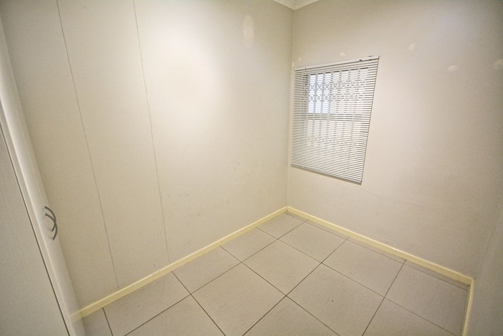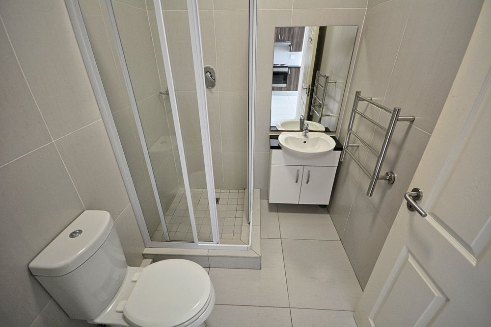 The bright bathroom offers a large shower and modern fittings. The main bedroom provides generous space with built-in cupboards and room for a small desk. The second, smaller bedroom is ideal as a home office for a professional or a children's room.