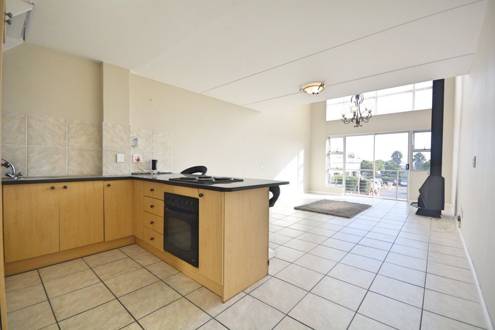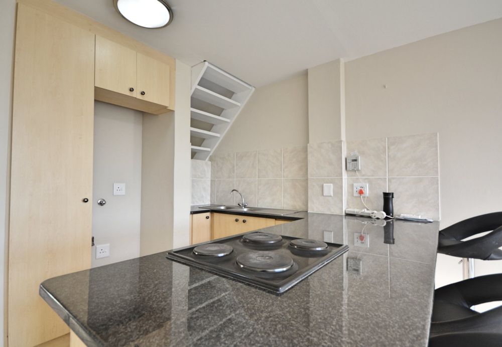 It has a spacious open-plan kitchen and living area, with a sliding door that leads out to a cozy balcony.