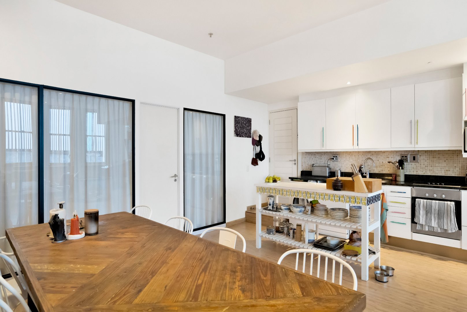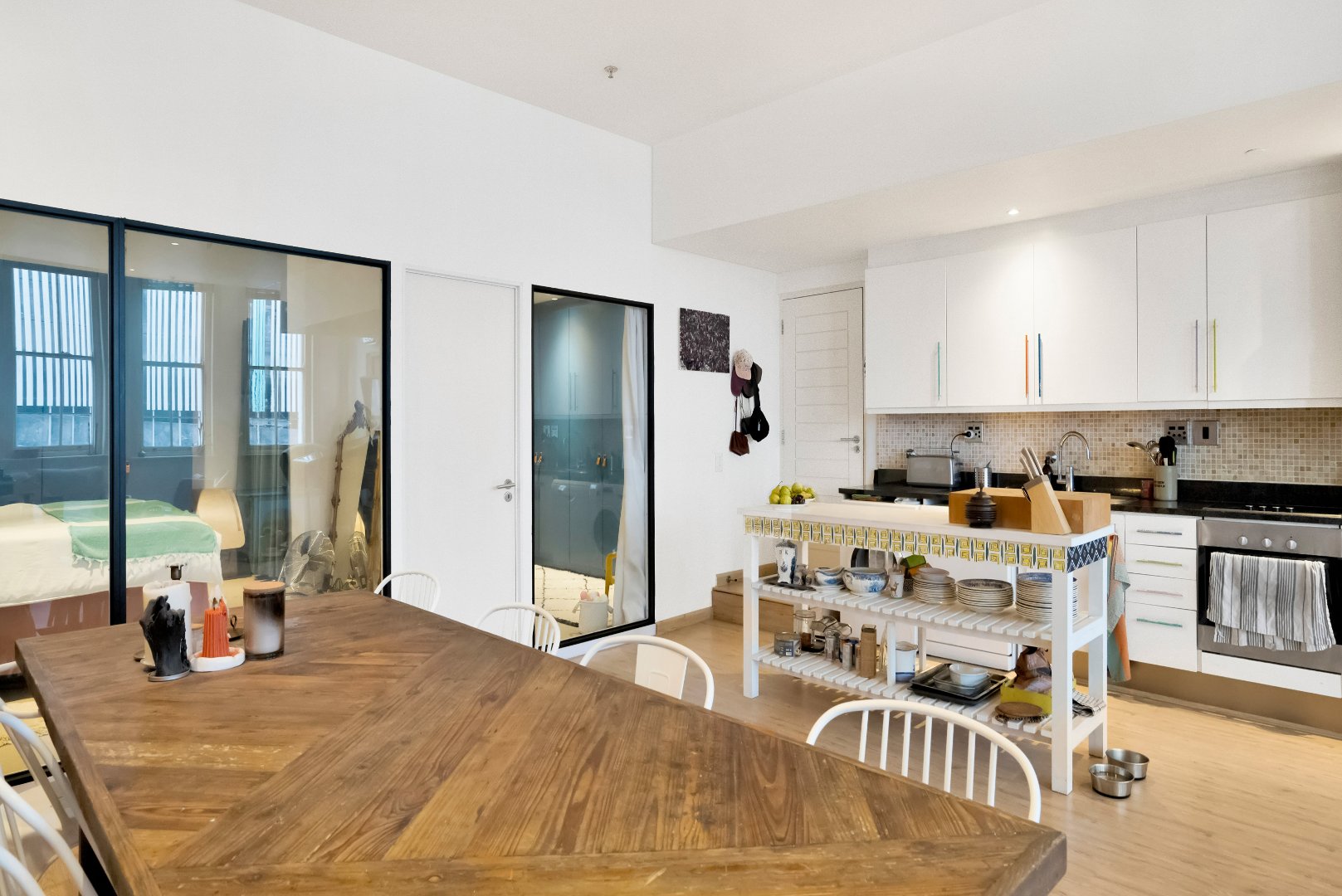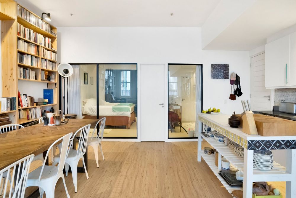 Experience urban living at its finest in this modern 2-bed, 2-bath apartment situated just on the corner of iconic Bree Street, Cape Town. Boasting a large, open-plan living area with high ceilings, this corner unit is bathed in natural light and offers the perfect balance of style and comfort. The spacious main bedroom can easily be converted to add a possible 3rd bedroom and bathroom.