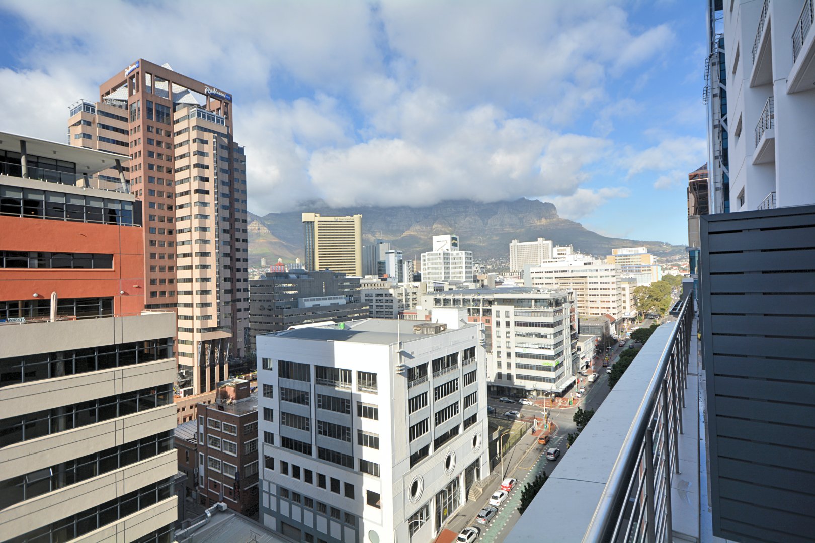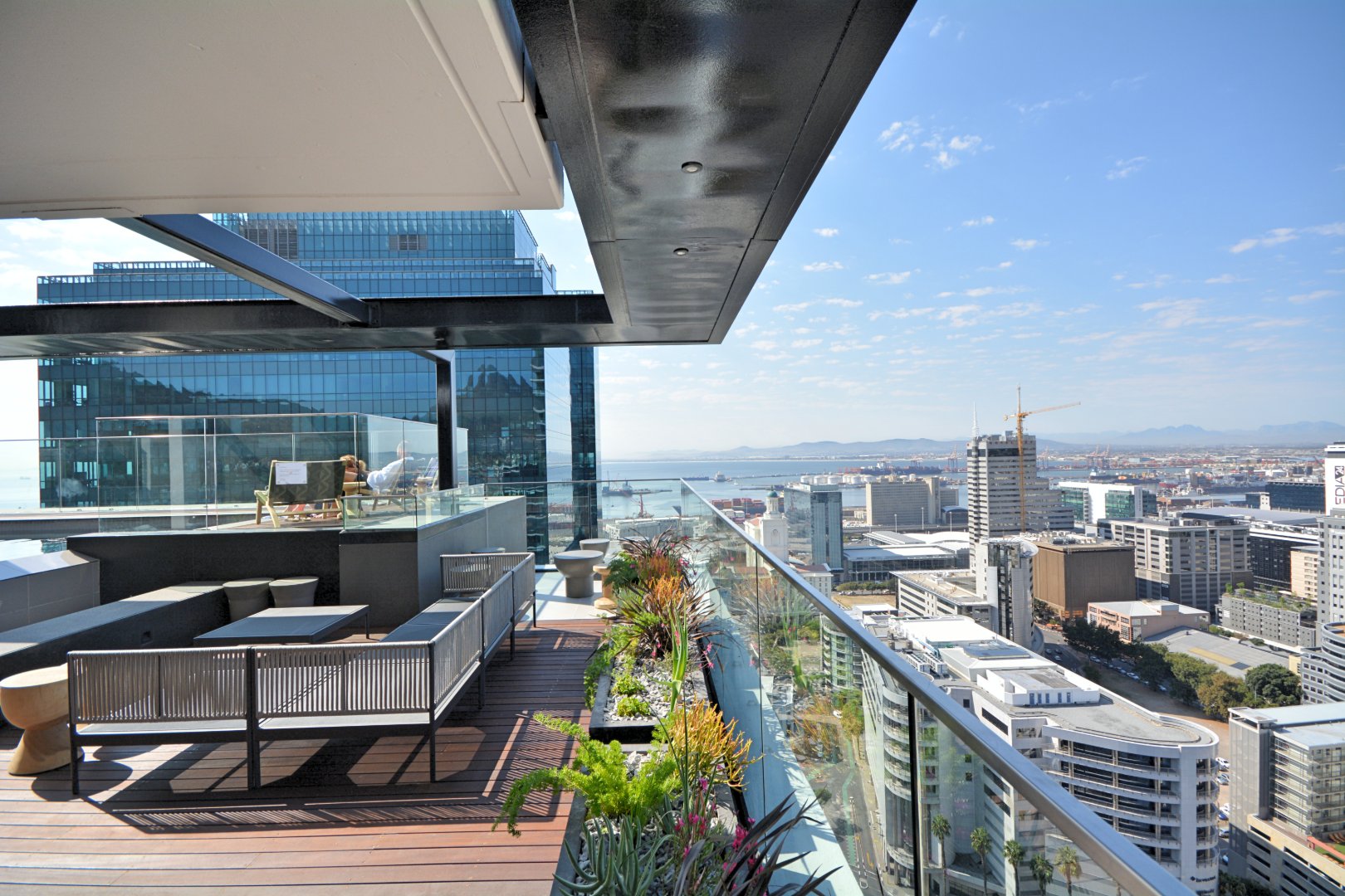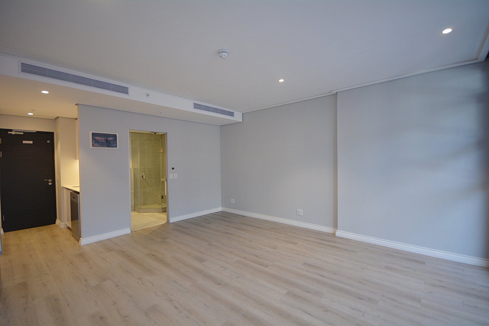 Located on the 12th floor, this beautiful stylish 51m2 unfurnished larger studio apartment features panoramic views of Table Mountain and the city landscape. Brand new and finished with high-quality finishes throughout and central air-conditioning. Open plan kitchen area with loads of natural light. The apartment comes with Smeg appliances; washer/Dryer combo, Fridge, Dishwasher, oven & stove combo. Electricity is Pre-Paid for the tenants account (Nusco Digital Utility App). The landlord has also installed curtains in this property and it comes with 1x secure parking bay.