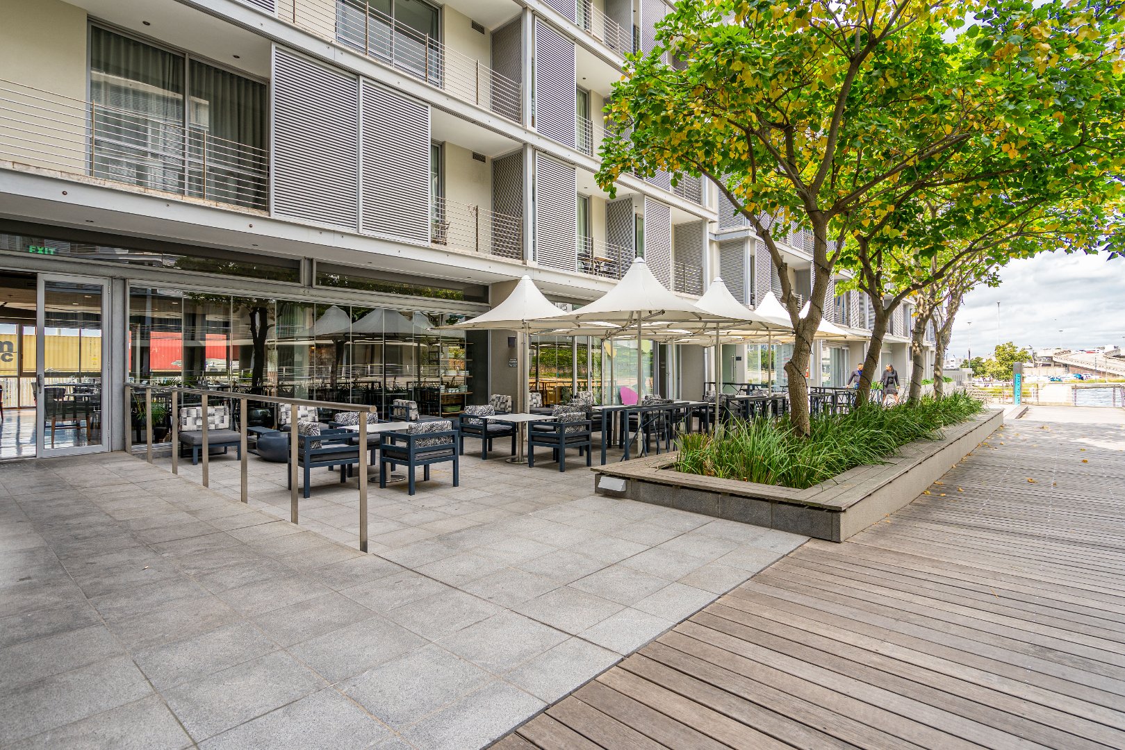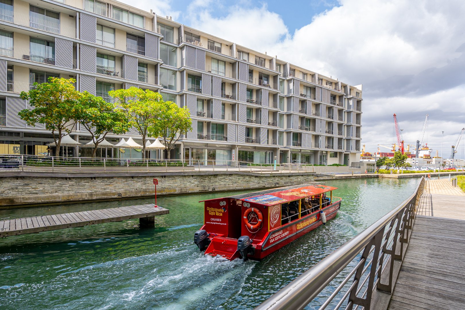 Enjoy additional amenities such as the rooftop pool, a serene retreat offering sweeping views of the surroundings, an on-site restaurant, and a water canal with exclusive access.