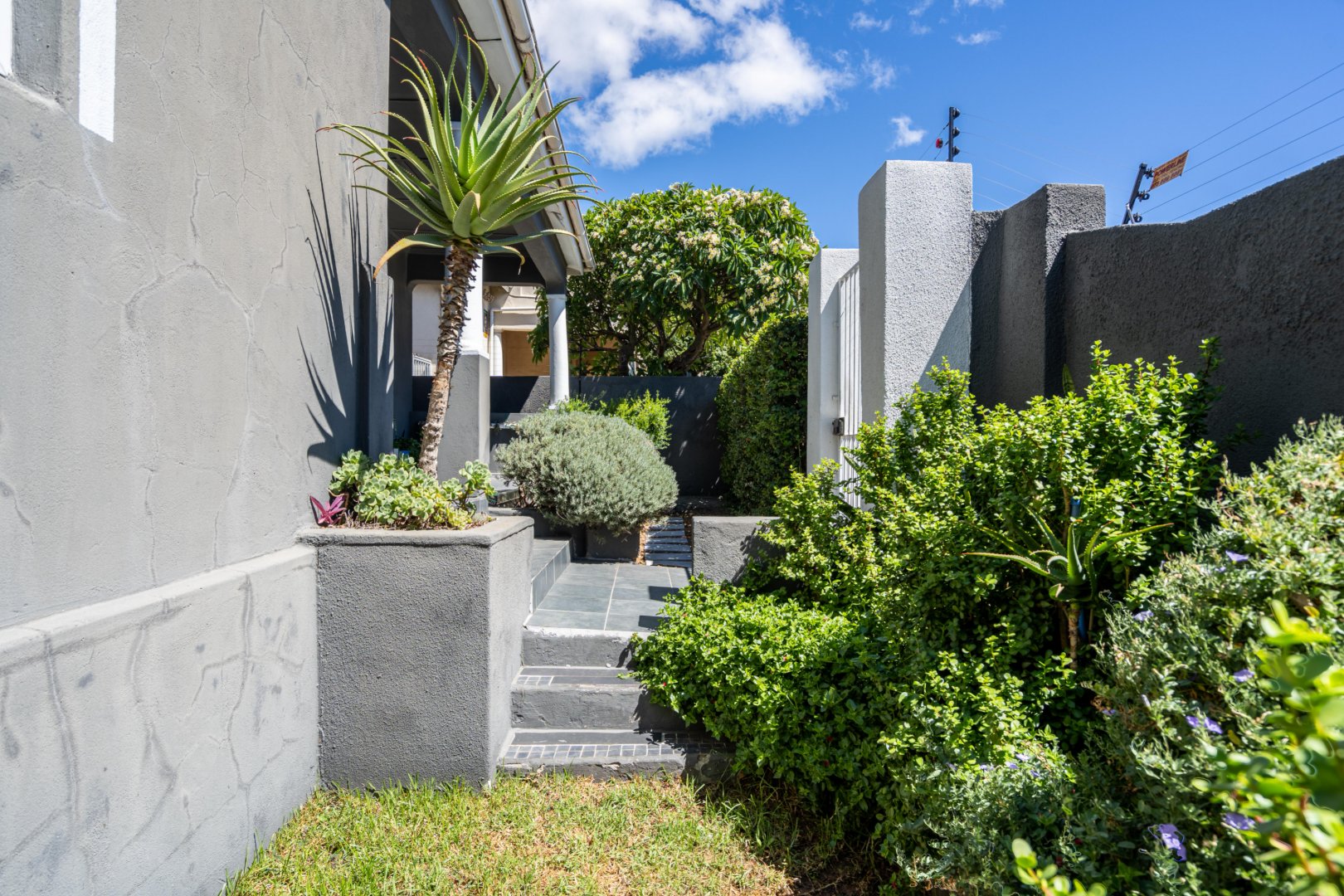 The outside veranda or porch gets plenty of sunlight and is covered in greenery, making it a peaceful and private space behind an electric fence. The garage has space for 3 cars with an access door leading into the kitchen.