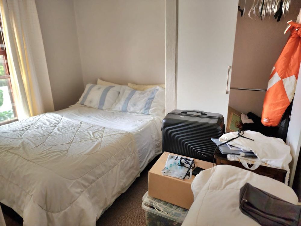 The ground floor is comprised of the entrance with a utility-courtyard. A newly renovated kitchen with a gas stove, a double-sink, Built In Cupboards (BIC’s), and plumbing for the dishwasher/washing machine. A lounge/living area with a fireplace and plenty of natural light, that opens to a big, beautiful private garden. Additionally, there is a half bathroom to the left of the lounge/living area.